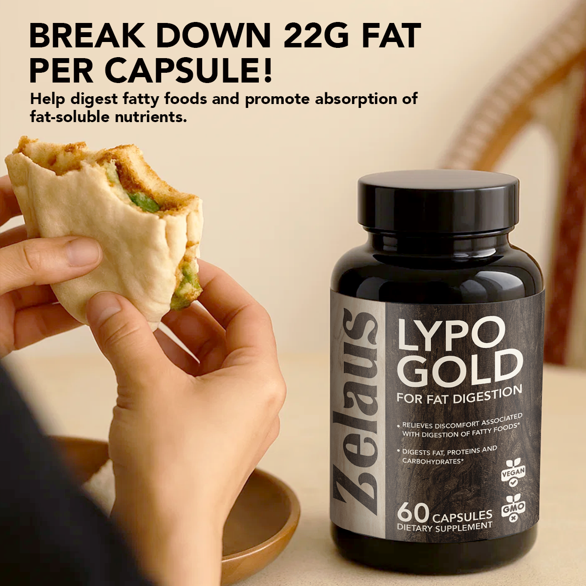 Not all enzyme supplements are created equal, and Lypo Gold has the most potent formula on the market. Zelaus's proprietary Thera-blend™ technology means that the enzymes found in Lypo Gold will work throughout the entire pH spectrum found along your digestive tract. When other brands’ enzyme formulas may fall short, in almost all acidic or alkaline environments, Lypo Gold will be effective.